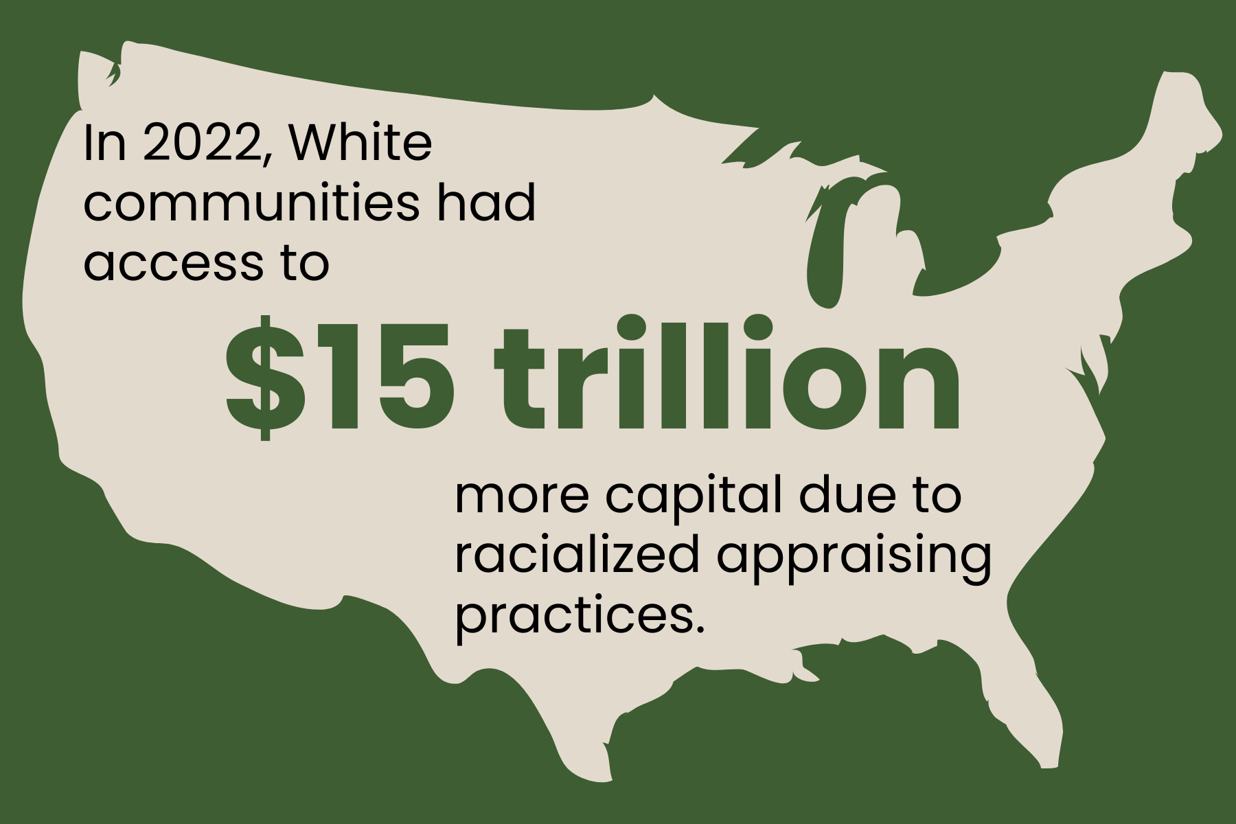 Collectively, the racial inequality in appraisals has resulted in White communities having access to $15 trillion more in capital simply because of the presence of White residents.